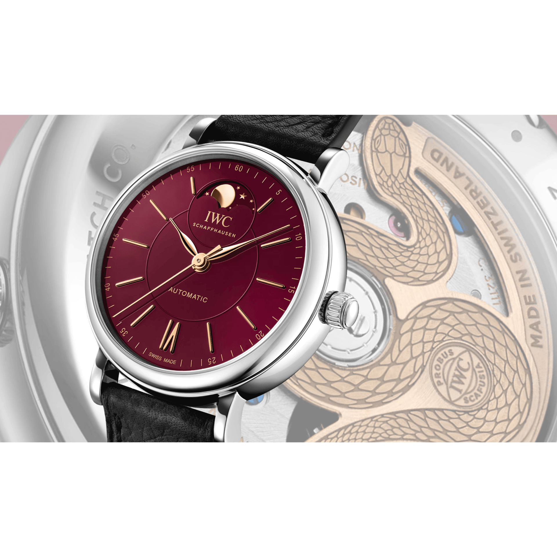 Sublimée par un boîtier en acier délicat de 37 millimètres et un cadran bordeaux raffiné, la Portofino Automatic Phase de lune 37 Édition « Year of the Snake » incarne l'élégance intemporelle.
